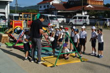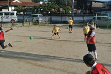 1年生は、鉄棒や転がしドッチボール、3年生はタッチラグビーをしていました。 タッチラグビーは初めてで、谷川先生に教えてもらいながら、楽しく挑戦していました。