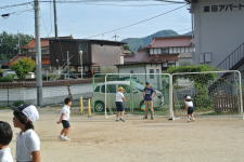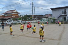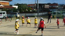 運動場が広いので、半分に仕切って、他の学年の子どもたちも外遊びを楽しんでいます。