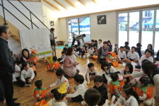かわいい衣装を着た0,1,2才の子どもたちを、1,2年生がもてなします。