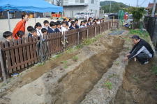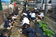 1,2年生は、学校から帰ってから「サツマイモの苗」を植えました。