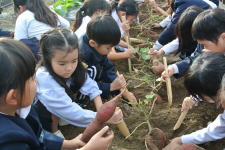 まず、髙橋先生から芋の掘り方を教えてもらってから、傷をつけないように気をつけながら掘っていきました。 今年は大きく、よく育っていて、みんな満足そうでした。