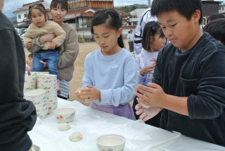 ついた後は、自分たちで丸めてホットプレートで焼いてもらい、砂糖醬油をつけて食べました。